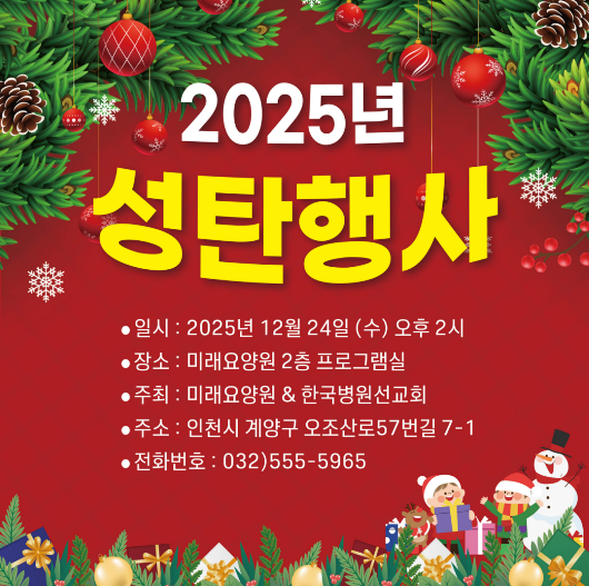 | 제목 | 2025년 성탄행사에 보호자님을 초대합니다. | 공지일 | 2025.12.01 |